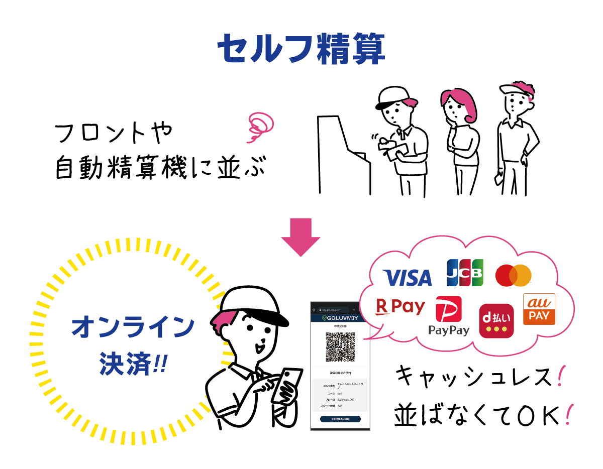 スマートフォン(スマホアプリ:ゴルミィ)でのサインレスチェックイン・ラウンドインフォメーション・オンライン決済などのスマートラウンド、ゴルフ場DXを実現します。